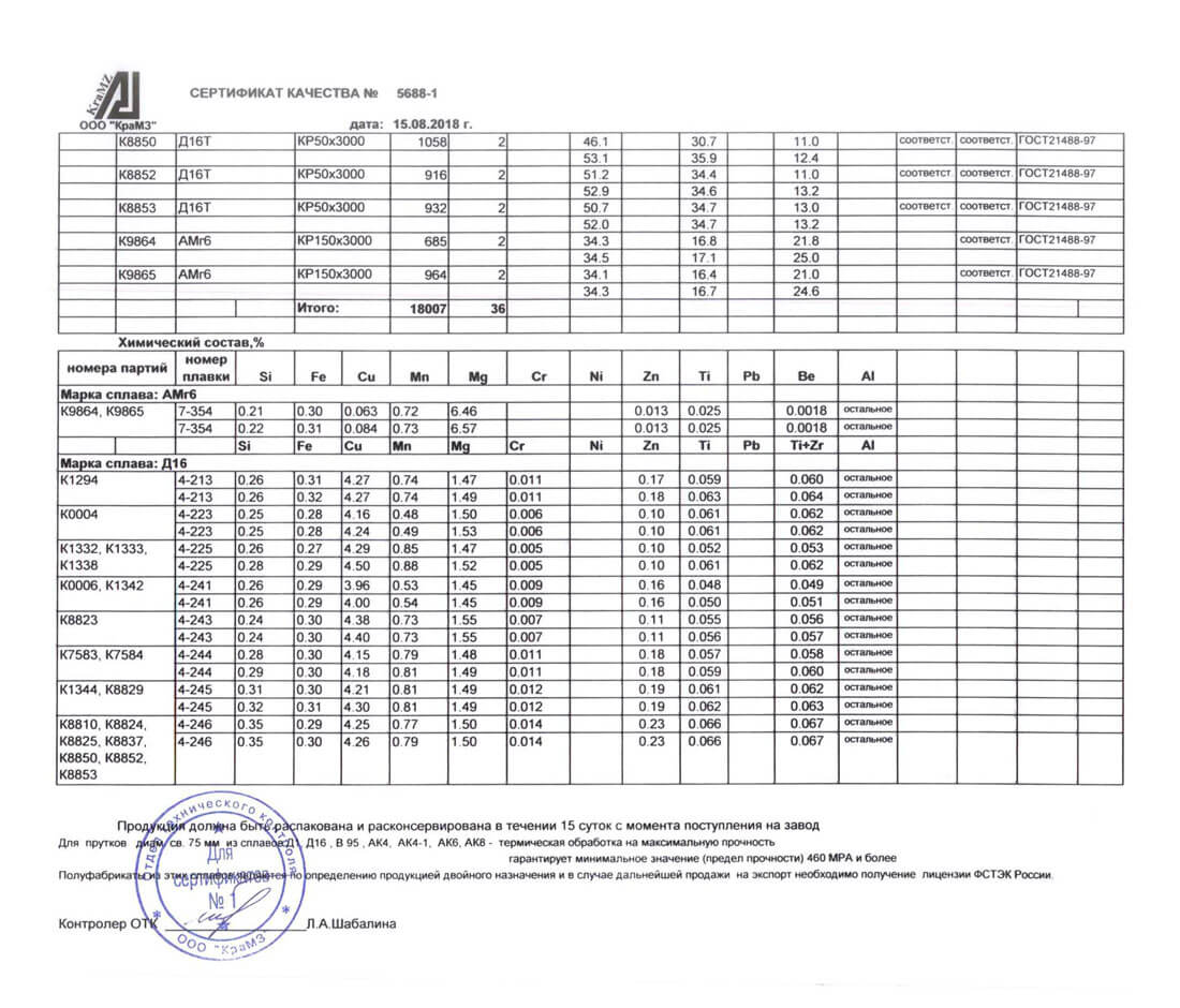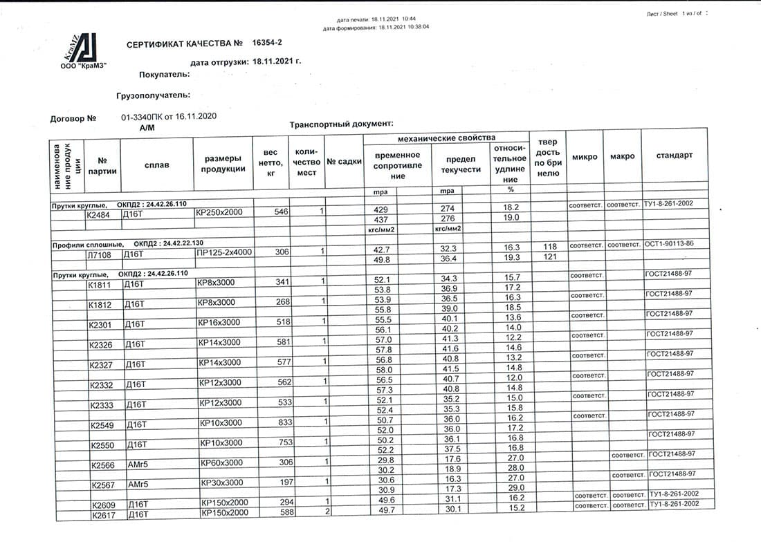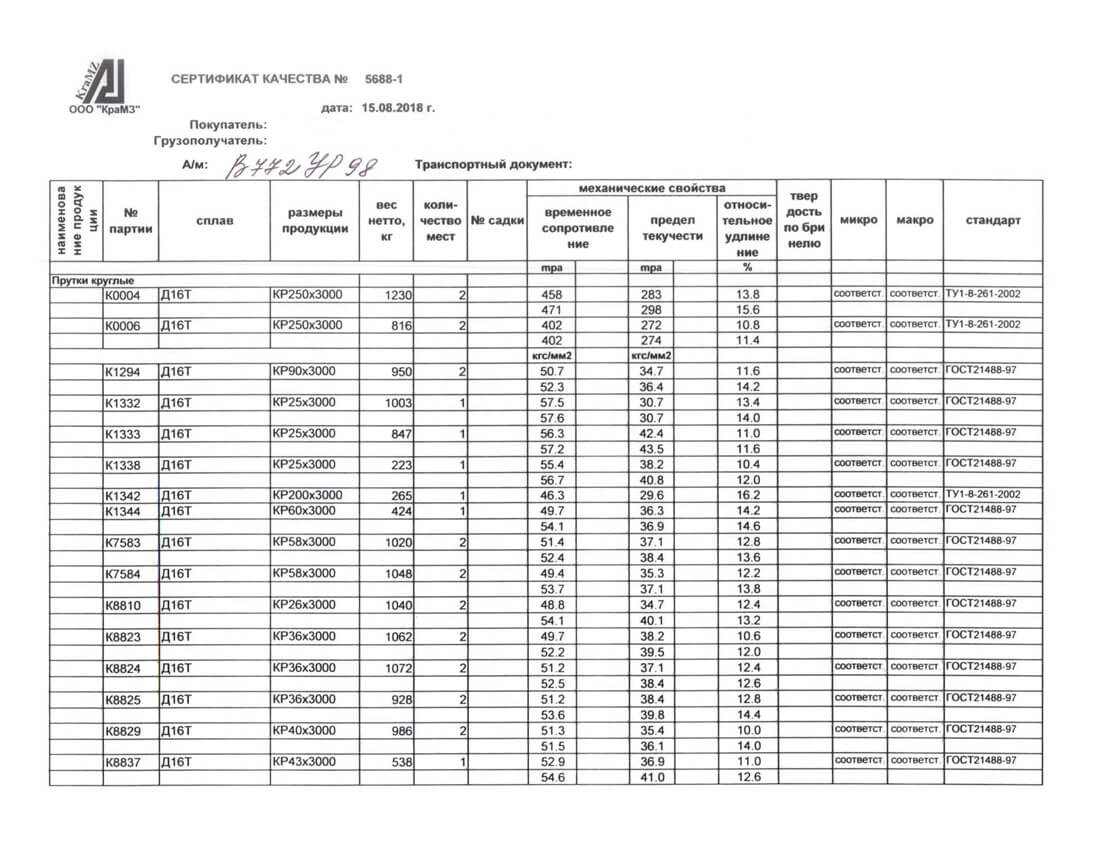 • Пруток Д16Т – термически закаленный сплав Д16, имеет большую устойчивость к статическим нагрузкам. Используется для изделий с диаметром более 100 мм.